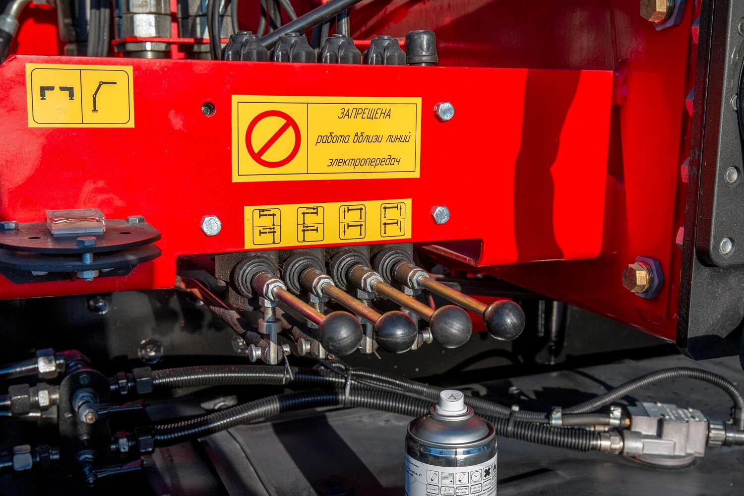 Управление с сиденья на колонне и дополнительные опоры входят в базовую комплектацию данной КМУ. Возможна установка защитного тента на кресло оператора. Грузовысотные характеристики обеспечиваются в полном диапазоне без смены кратности запасовки грузового каната, что удобно в эксплуатации и исключает ошибку оператора при её выборе. Комплектация как поворотными, так и неповоротными опорами открывает возможности для монтажа КМУ на широкий диапазон шасси. Применение поворотных опор сохраняет клиренс шасси повышенной проходимости, неповоротные опоры обеспечивают максимальную скорость подготовки и стабильность в работе.