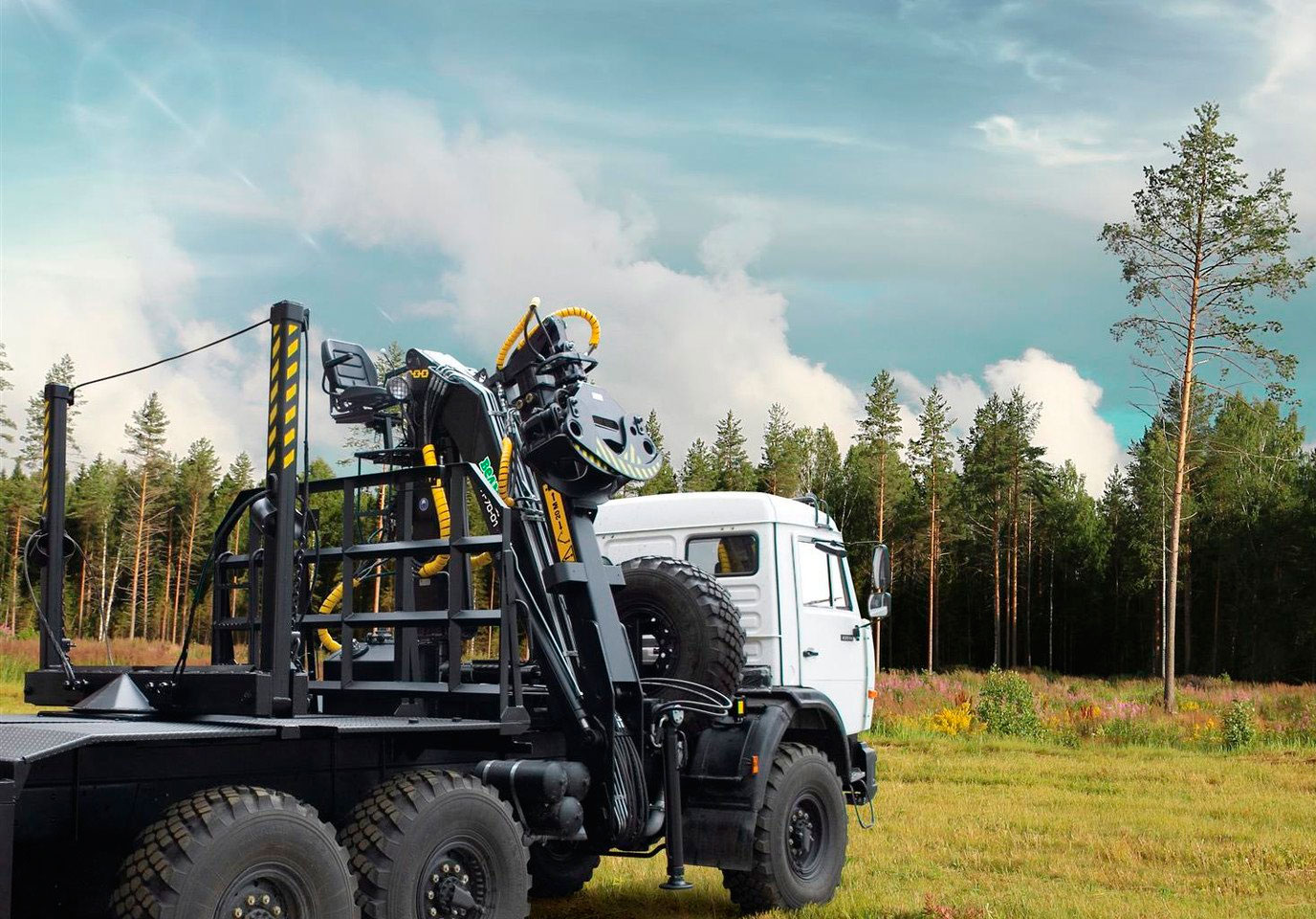 Гидравлический манипулятор ОМТЛ-70-01 устанавливается за кабиной или на задней части грузовой платформы автомобилей КамАЗ, Урал, МАЗ, КрАЗ, также используется в составе специальных машин.